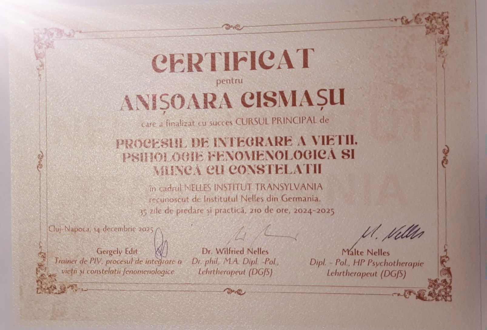 Formarea în Constelaţii Familiale şi Procesul Integrării Vieţii au venit natural pe tranzitul lui Uranus în Cheia Genelor 2 (Dislocare – Orientare - Unitate), care reprezintă Sfera Culturii în profilul meu hologenetic, sau munca mea în cultura în care trăiesc, cheie care în I Ching se numeşte Câmpul.