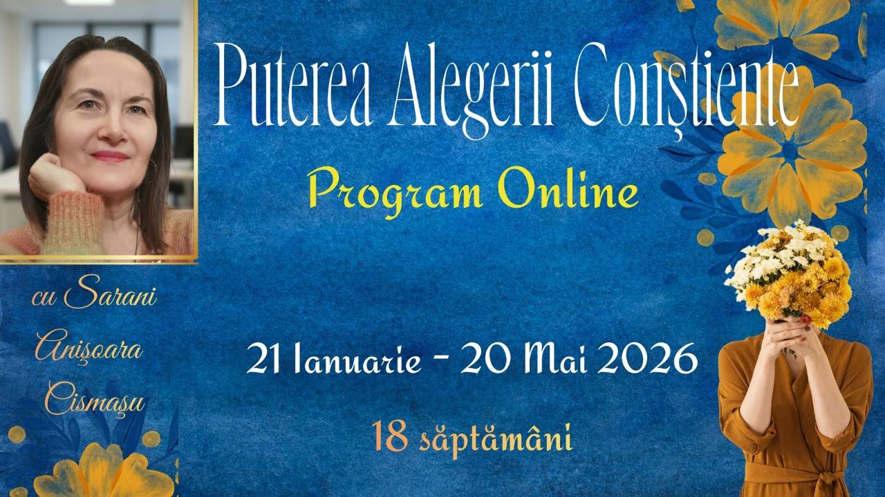 De aceea am creat programul care se va desfăşura online timp de 18 săptămâni: Puterea Alegerii Conştiente.
